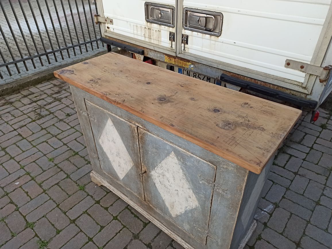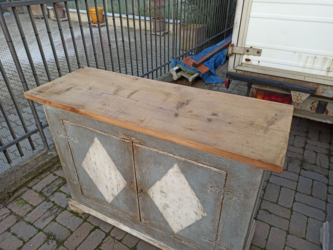 Il piano superiore di ogni mobile è costituito da una tavola unica in legno di cirmolo ed è stata lasciata a legno grezzo