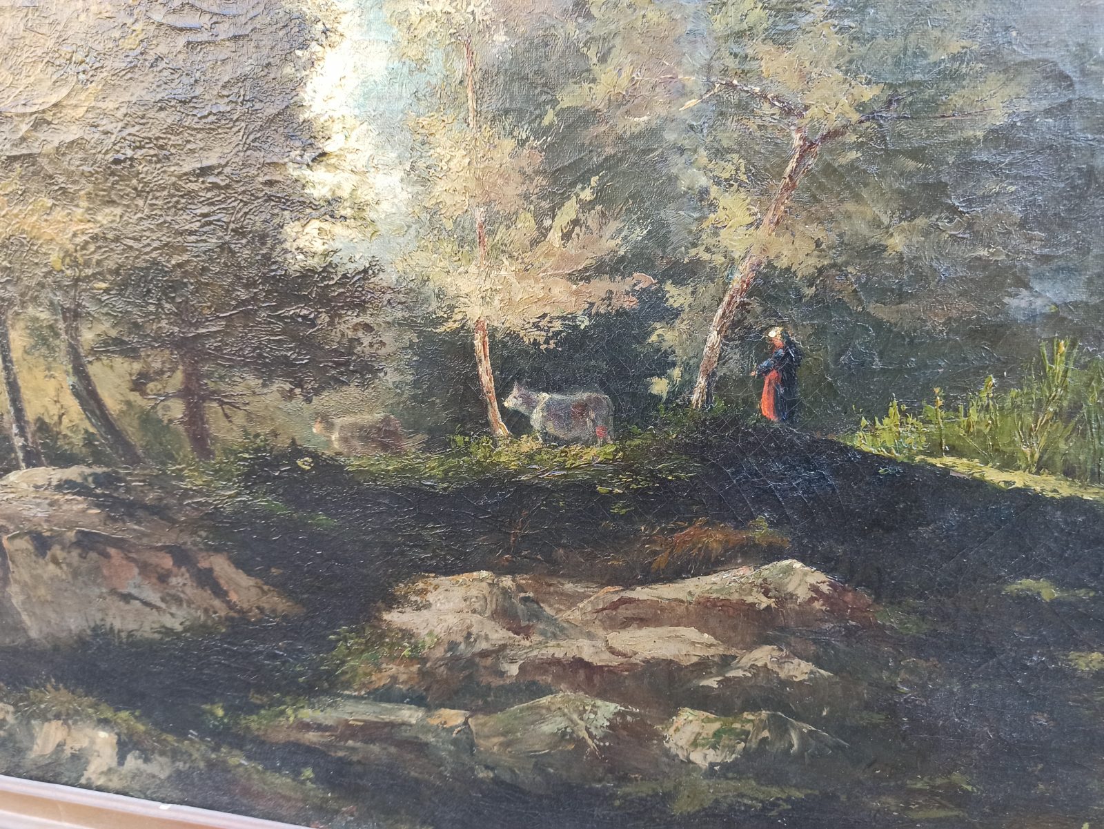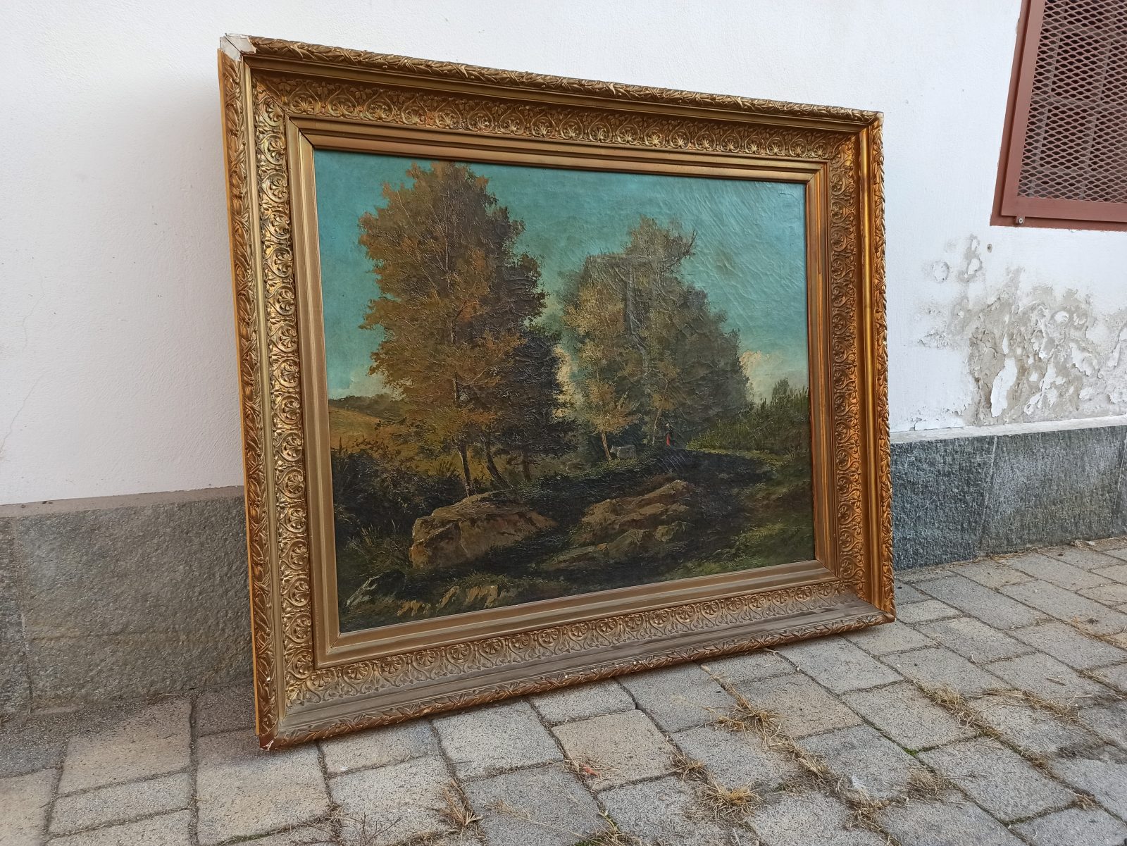 Dipinto olio su tela -” Paesaggio ” – con cornice dorata – Francia fine del XIX secolo